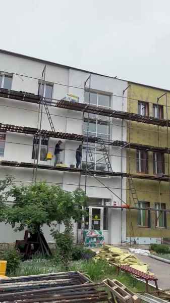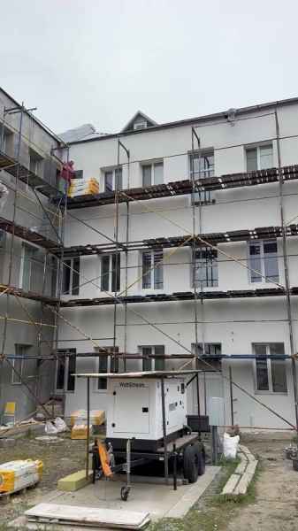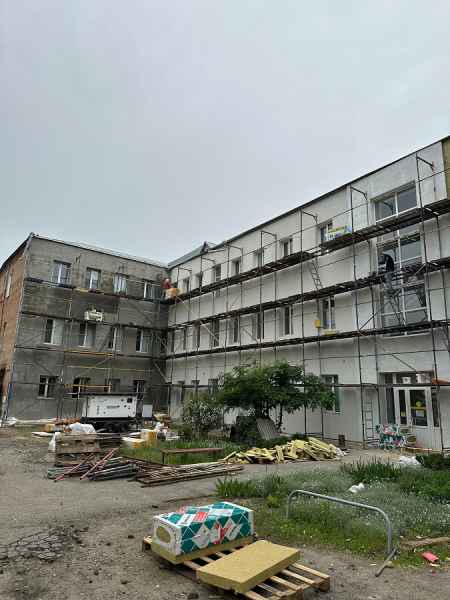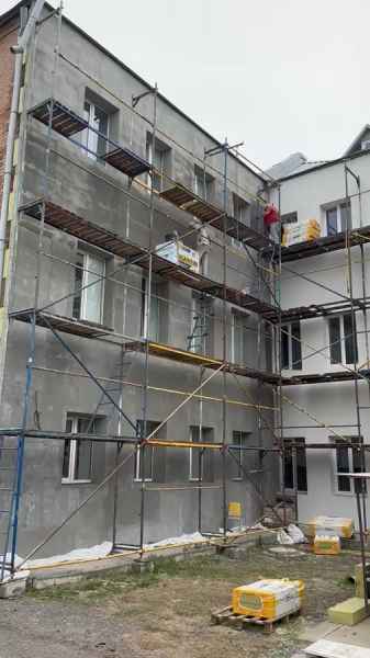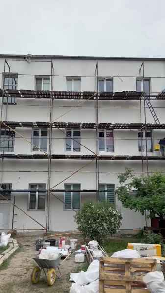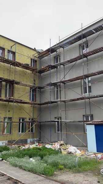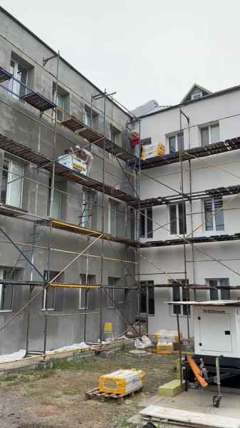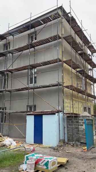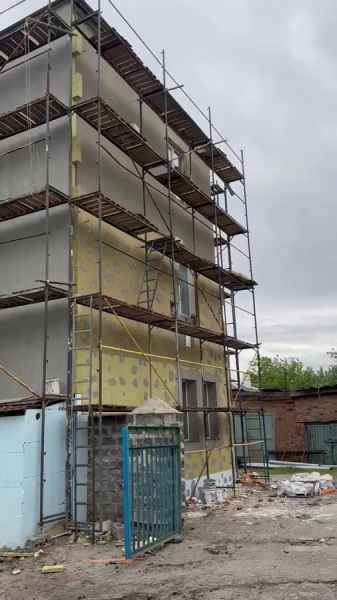 Ein Teil der Fassade ist bereits fertiggestellt.