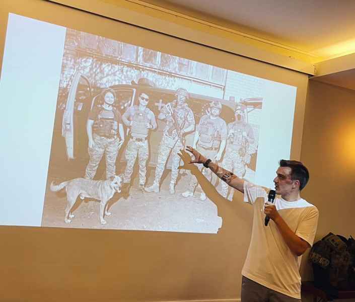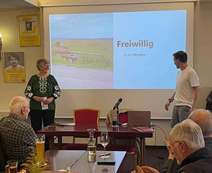 Bei einem sehr gut besuchten Abend berichtete Ruben Marwick über seinen Einsatz als Rettungssanitäter im Gebiet Donezk. Nach seinem beeindruckenden Vortrag gab es stehenden Applaus.