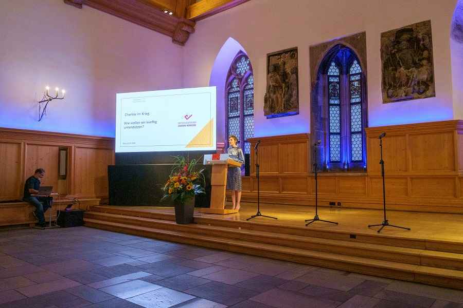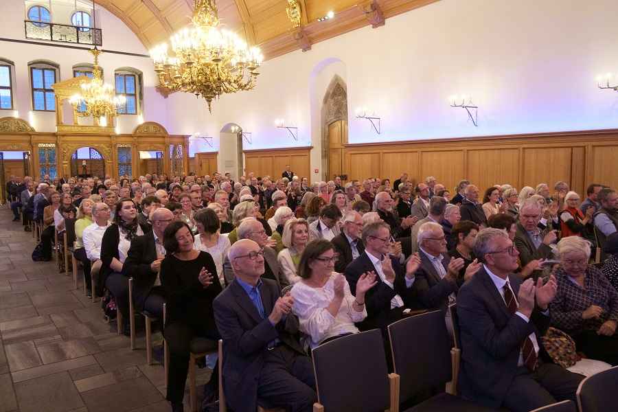 Zum Empfang von Spendern und Helfern am 23.September 2025 der Stadt Nürnberg und des Partnerschaftsvereins kamen über 300 Geladene. Die Oberbürgermeister beider Städte würdigten die große Unterstützung und Hilfe für Charkiw.